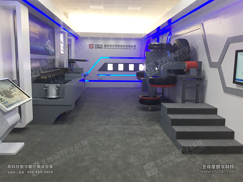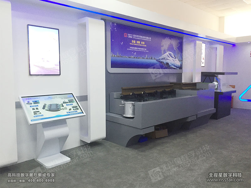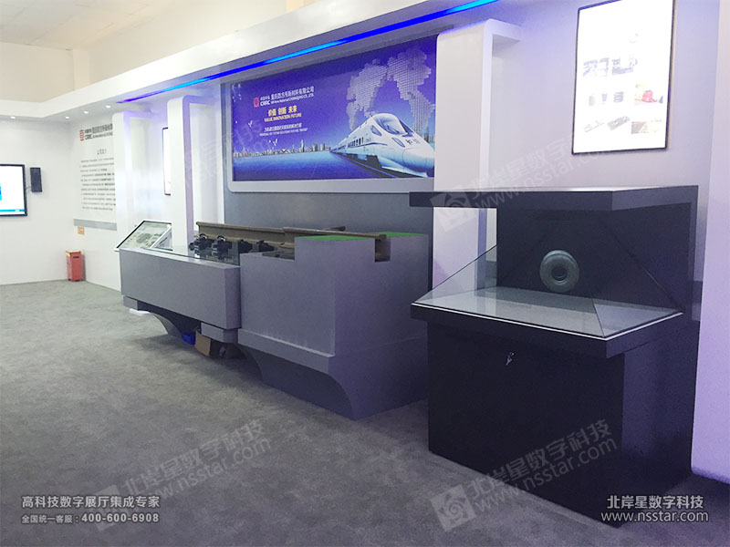 展廳包含軌道模型制作、減振系統(tǒng)模型、270度全息產(chǎn)品展示、觸摸屏多媒體展示系統(tǒng)等。