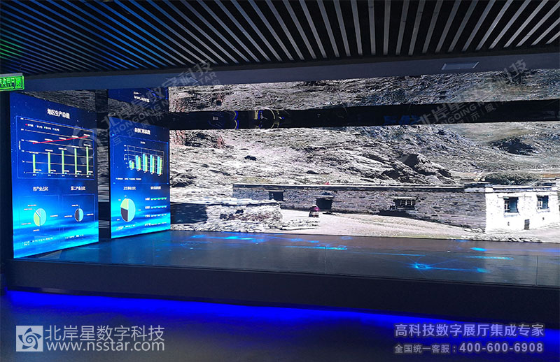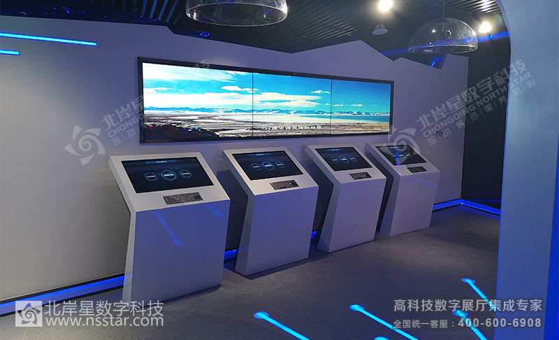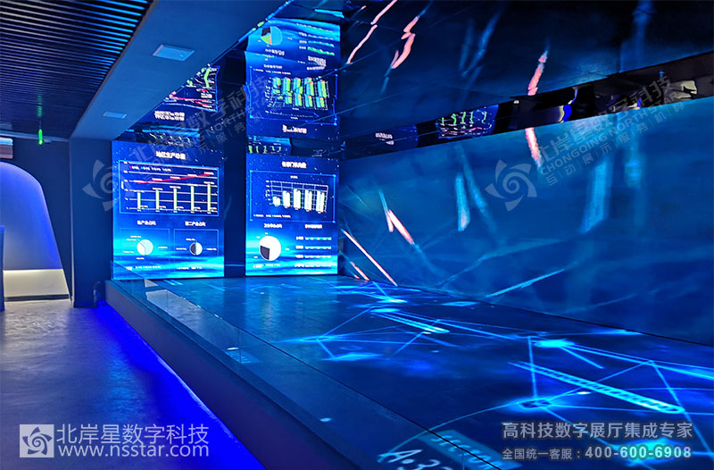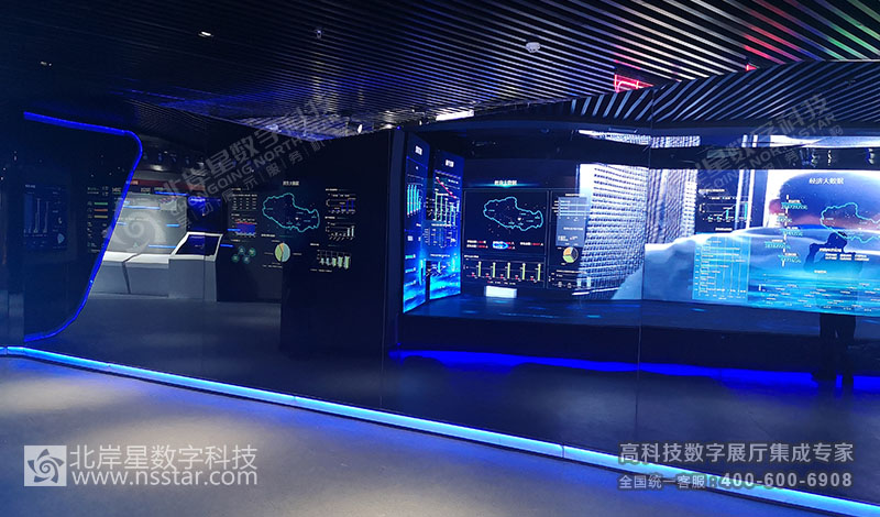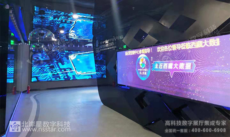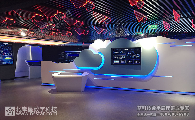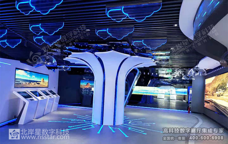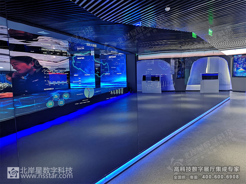 本展廳包含24套可視化大數(shù)據(jù)軟件、無線中控系統(tǒng)APP、多屏切換系統(tǒng)、多維LED大屏幕及軟件、簽名系統(tǒng)、云數(shù)據(jù)讀取、時空隧道走廊、人流量控制及識別系統(tǒng)等豐富的高科技多媒體展示方式。