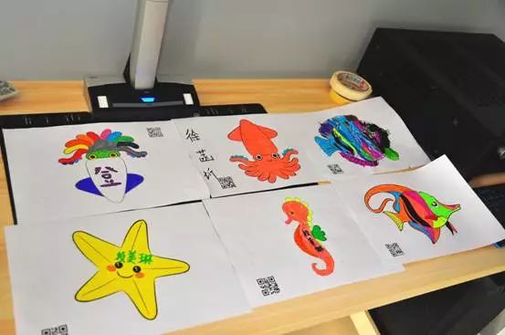 (魚兒涂色,掃描到大屏幕中的海底世界)