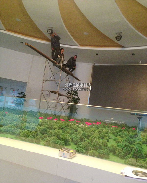 技術(shù)員正在安裝調(diào)試展廳搖頭燈