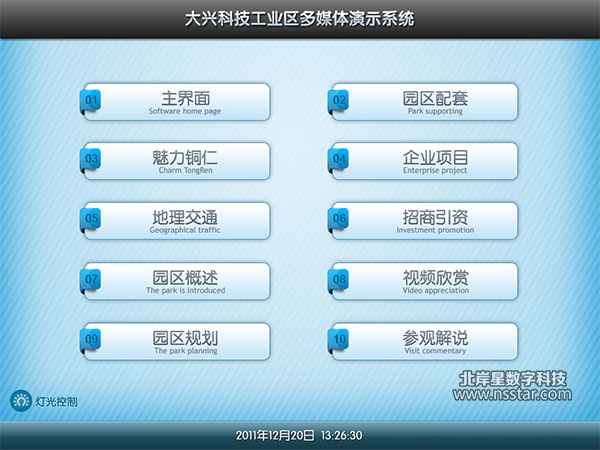 本多媒體軟件應(yīng)用于貴州省銅仁市大興科技工業(yè)園規(guī)劃展廳,使用蘋(píng)果ipad平板電腦+觸摸屏一體機(jī)+LED大屏幕同步+kinect控制的方式
