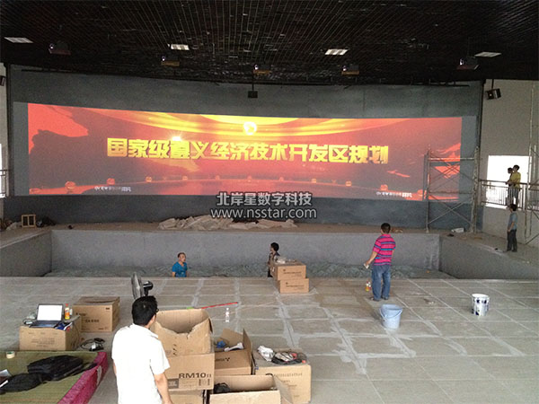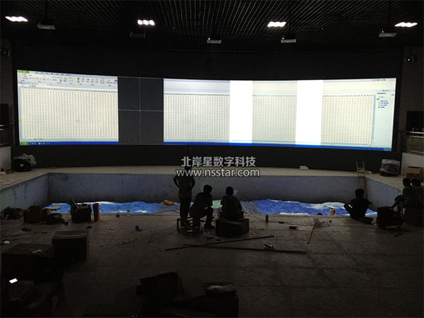 17米寬的弧幕拼接調(diào)試中