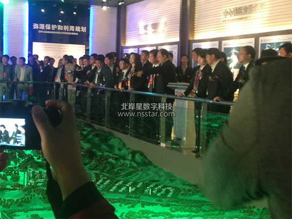 大屏幕正在播放視頻解說、搖頭燈在同步控制沙盤