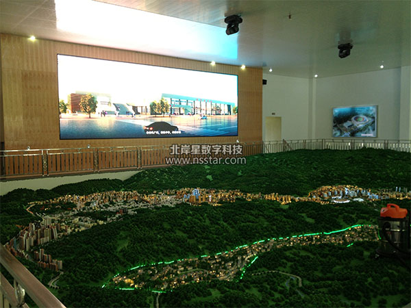 本系統(tǒng)包含3米*9米的(P4)LED大屏幕、多媒體互動(dòng)展示軟件一套、12分鐘視頻解說(shuō)詞一套、蘋(píng)果iPad中控系統(tǒng)、投影播放系統(tǒng)、沙盤(pán)搖頭燈渲染燈控制系統(tǒng)等。