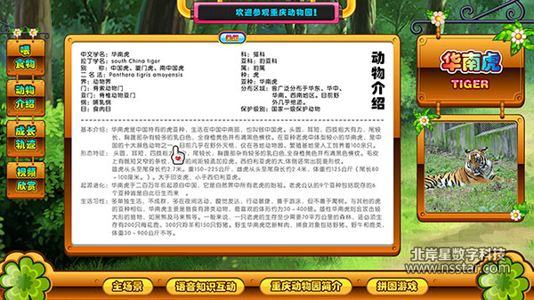 游客可以給動物們喂食物,當(dāng)食物喂錯時,動物會不開心;當(dāng)喂正確了食物,動物會開心的謝謝你,并津津有味的吃起來。