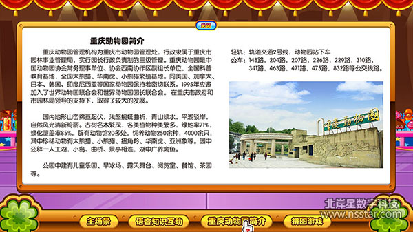 重慶動物園,地處重慶西郊,是全國大型城市動物園之一。本系統(tǒng)包含語音機器人、卡通互動軟件、FLASH小游戲、Kinect體感識別系統(tǒng)。