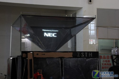 還有一家系統(tǒng)集成商,展出了大屏幕的全息顯示設(shè)備,是通過(guò)投影反射畫(huà)面,實(shí)現(xiàn)了裸眼3D效果,這套設(shè)備更適合應(yīng)用于博物館、展會(huì)等大型會(huì)所,可以展現(xiàn)逼真的立體影像。