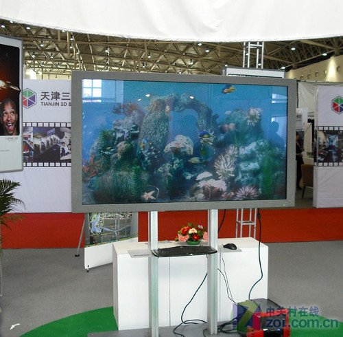 在另一家展臺(tái)上,我們還看到了裸眼3D顯示器,這款顯示設(shè)備在現(xiàn)場(chǎng)播放一段海底畫(huà)面,里面的各種魚(yú)類(lèi)來(lái)回游動(dòng),栩栩如生,就像一個(gè)大魚(yú)缸。