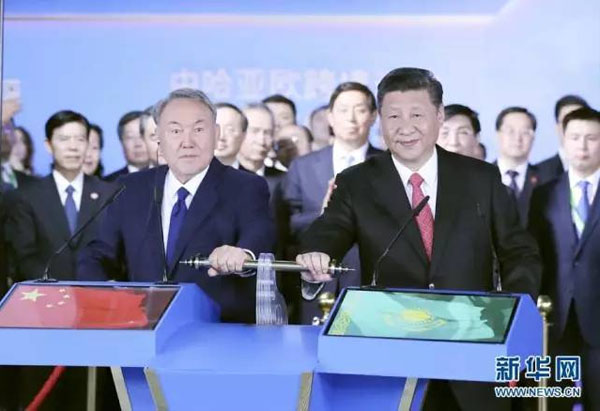 習(xí)近平在致辭中指出,中哈亞歐跨境貨運(yùn)班列的啟動(dòng)不僅惠及中哈兩國(guó),而且將為“一帶一路”沿線有關(guān)國(guó)家創(chuàng)造更多運(yùn)輸便利和合作機(jī)遇,體現(xiàn)絲綢之路經(jīng)濟(jì)帶和21世紀(jì)海上絲綢之路的有機(jī)對(duì)接。雙方積極落實(shí)《絲綢之路經(jīng)濟(jì)帶建設(shè)和“光明之路”新經(jīng)濟(jì)政策對(duì)接合作規(guī)劃》。哈薩克斯坦已經(jīng)從傳統(tǒng)內(nèi)陸國(guó)轉(zhuǎn)型為亞歐大陸關(guān)鍵運(yùn)輸樞紐,在東西方貿(mào)易鏈中發(fā)揮日益重要的作用。中哈跨境運(yùn)輸合作的不斷深化,將為地區(qū)發(fā)展繁榮貢獻(xiàn)更大力量。希望雙方繼續(xù)通力協(xié)作,將連云港-霍爾果斯串聯(lián)起的新亞歐陸海聯(lián)運(yùn)通道打造為“一帶一路”合作倡議的標(biāo)桿和示范項(xiàng)目,共同建設(shè)和平之路、繁榮之路、開(kāi)放之路、創(chuàng)新之路、文明之路。