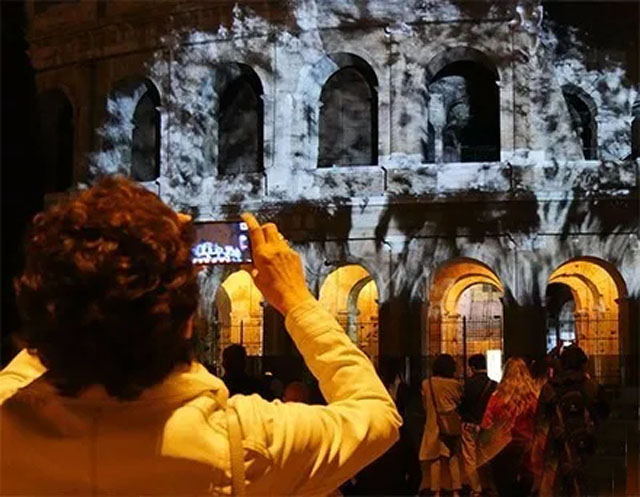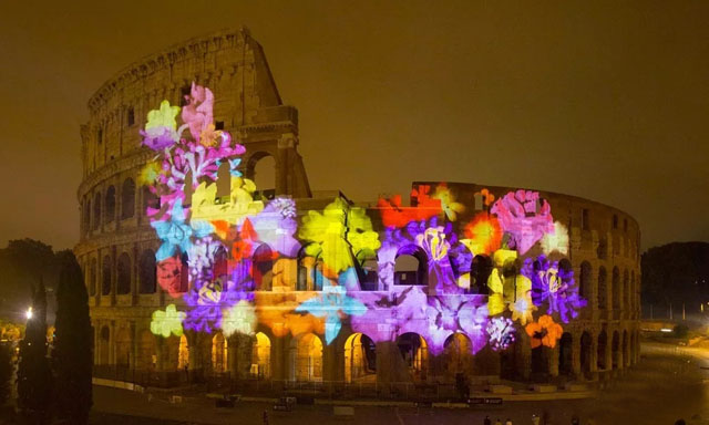 近2000年來(lái),羅馬斗獸場(chǎng)一直是古羅馬文化的象征。在羅馬時(shí)代,曾舉辦過(guò)角斗比賽和公開(kāi)表演。在中世紀(jì),曾作為住宅、工廠、堡壘和采石場(chǎng)使用過(guò)。此次,著名的圓形競(jìng)技場(chǎng)將化身為一塊投影幕,設(shè)計(jì)師會(huì)在上面用光影演繹一個(gè)特別的周年紀(jì)念活動(dòng)。燈光秀是由日本和意大利大使館委托石井照明設(shè)計(jì)公司(Motoko Ishii Lighting Design)和石井概念工作室共同設(shè)計(jì)打造的,為紀(jì)念兩國(guó)建交150周年而特別策劃。
