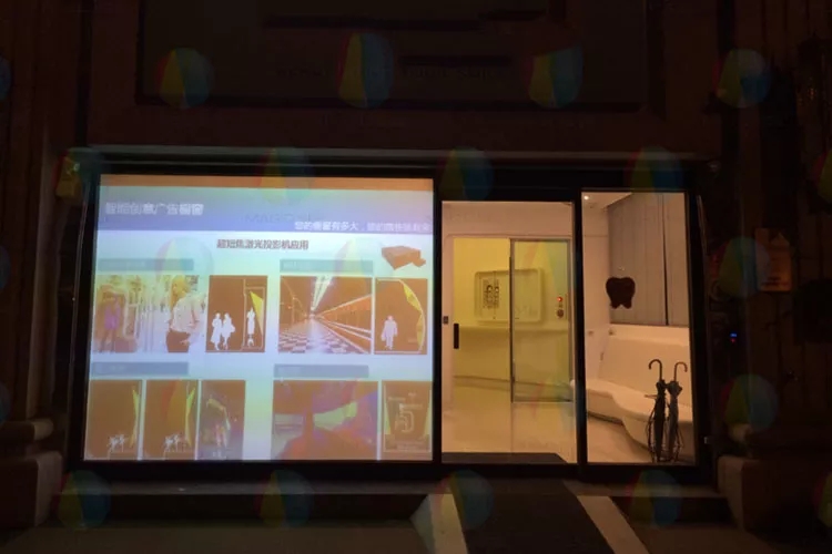 霧化玻璃櫥窗的玻璃可以變透明、變霧化,還可以在霧化時變成投影屏幕,一舉三得。