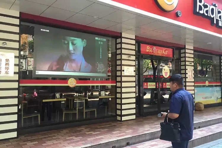 在一些人員密集的商業(yè)街,我們可以看到很多LED屏幕的廣告,而我們要介紹的霧化玻璃廣告櫥窗,也可以媲美LED屏幕的效果。