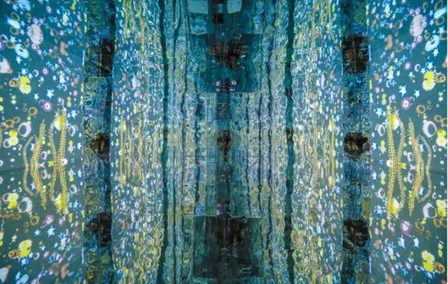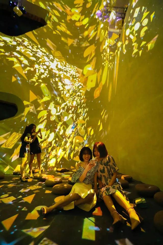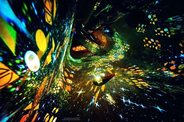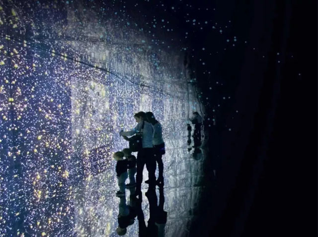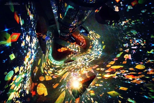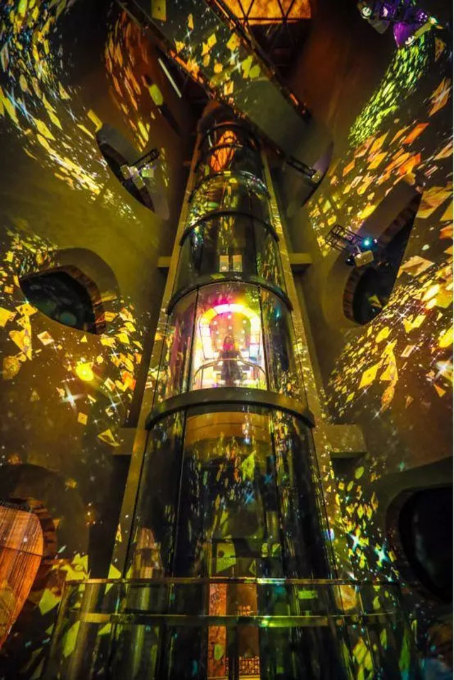 “無(wú)限之境“利用藝術(shù)中心的觀(guān)光電梯天井,打造了一個(gè)全世界獨(dú)一無(wú)二的時(shí)空隧道,可以通過(guò)地面和乘坐電梯兩種方式觀(guān)展,打破常規(guī)的展覽方式,帶來(lái)不一樣的觀(guān)展體驗(yàn)。