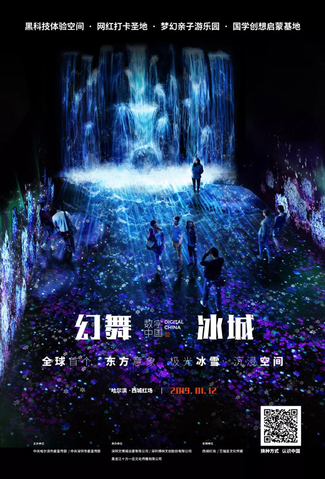 “肆庫(kù)數(shù)字中國(guó)”首站將走進(jìn)滿載異域風(fēng)情、中俄文化交誼深厚的冰雪之城哈爾濱,以“數(shù)字中國(guó)·幻舞冰城”為主題建館紅博·西城紅場(chǎng),于本月12日正式開館!盎梦璞恰睂⒅袊(guó)之北極具地域文化特色的冰雪、極光、丁香花等元素融入到中華傳統(tǒng)文化的東方語(yǔ)境中,以酷炫的黑科技再現(xiàn)奇特瑰麗的東方意象,以夢(mèng)幻般的造景手法再造一個(gè)浪漫唯美的哈爾濱。