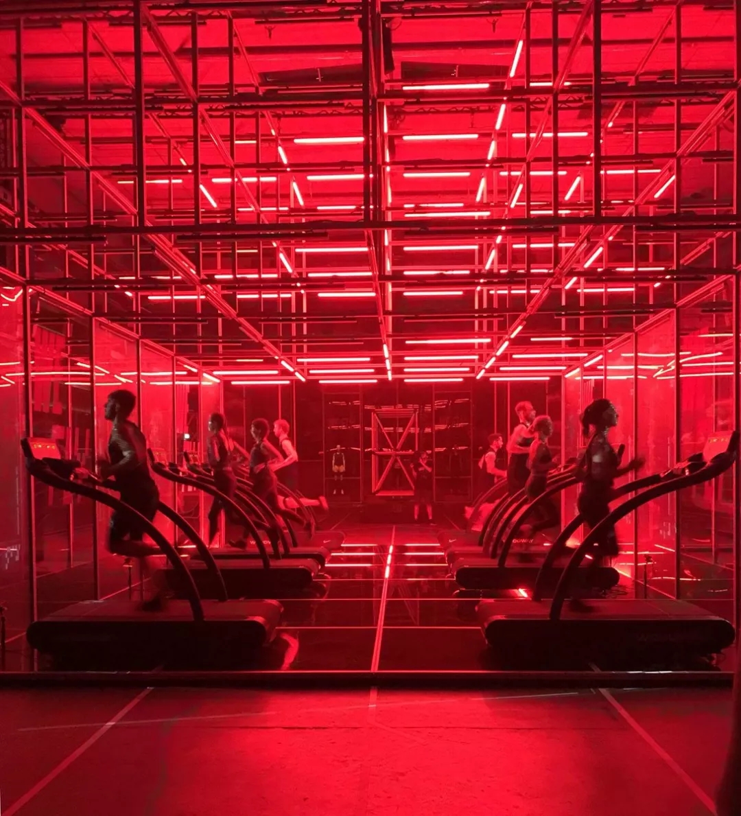 為了慶祝NIKE旗下新鞋的上市,NIKE最近委托創(chuàng)意團(tuán)隊(duì)Monomango和Sunst Studio在德國(guó)柏林打造了一個(gè)與眾不同的健身空間,它由一個(gè)巨大的LED燈光網(wǎng)格裝置組成,裝置上的紅色燈光來(lái)回閃爍并不時(shí)環(huán)繞整個(gè)空間,加上工業(yè)冷峻的背景音樂(lè)讓整個(gè)健身房增添了幾分未來(lái)之感。