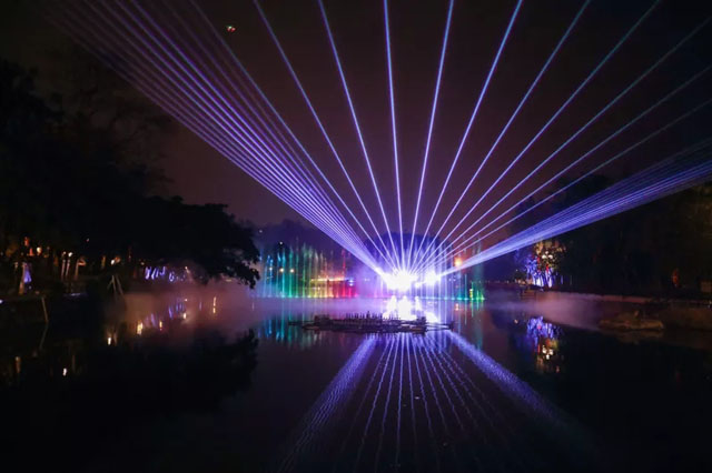 這場氣勢(shì)磅礴的燈光秀,融合了3D投影、激光、舞臺(tái)燈具、景觀燈具、水秀、霧森及音樂等多種類型的表現(xiàn)形式,每種類型都有自身特定的色彩和開關(guān)控制,異常復(fù)雜,因此對(duì)燈具的光效、穩(wěn)定性,特別是聯(lián)動(dòng)控制提出了非常高的要求。