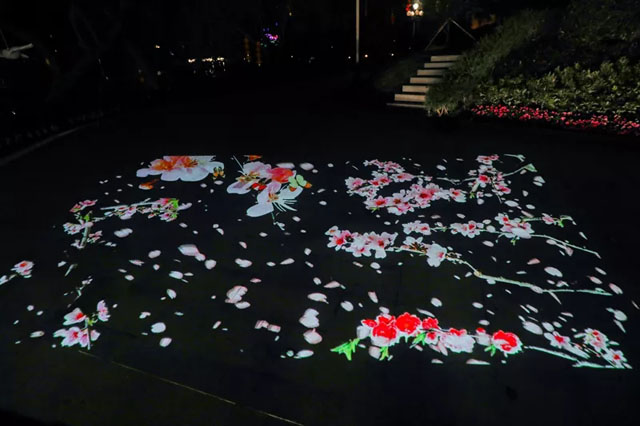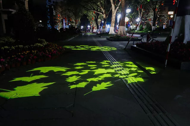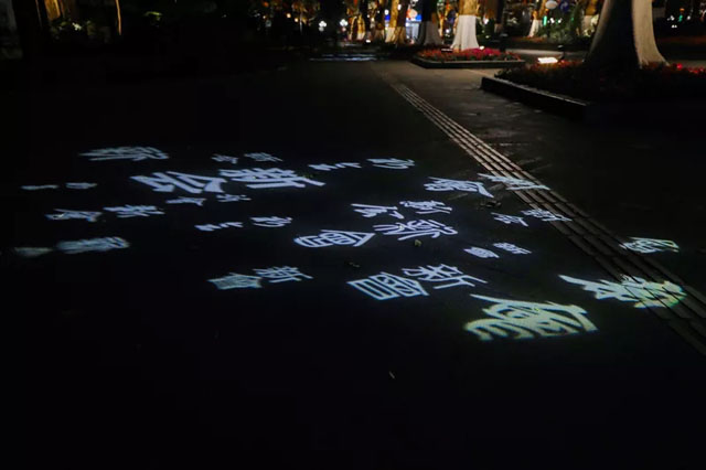 在兩極一軸中,達(dá)森燈光的圖案燈、投影機(jī)、水紋燈、光束燈等多種文創(chuàng)燈光燈具,也靈活運(yùn)用在新會(huì)美術(shù)館、新會(huì)人民會(huì)堂周邊、圭峰山永鎮(zhèn)山門、圭峰路、公園路、新豪景廣場,盆趣園,艇仔湖等幾大節(jié)點(diǎn),下面就跟隨小編來一場“眼睛旅行”吧: