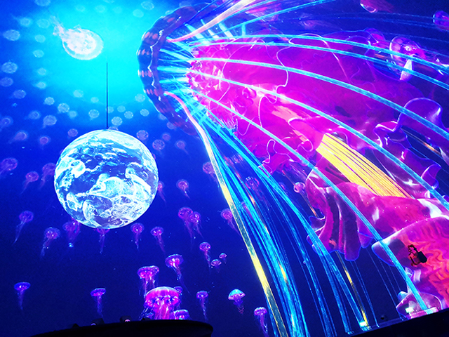 上海海昌海洋公園是世界級旗艦式海洋公園,大連博濤總包贏康配合打造的《時(shí)空之!诽炷挥霸喉(xiàng)目通過超強(qiáng)的觀看沉浸感,逼真的畫面和精巧絕妙的影片創(chuàng)意獲得了觀眾的一致贊嘆,項(xiàng)目還在第八屆“ITIA艾蒂亞獎”評選中獲得了“中國最佳旅游產(chǎn)業(yè)創(chuàng)新獎”。該天幕影院是大小球嵌套的建筑形式,表演形式非常新穎,尚未有前例可循,經(jīng)過反復(fù)的修改設(shè)計(jì)方案和不斷試驗(yàn),贏康完成了《時(shí)空之!诽炷谎莩龅耐队跋到y(tǒng)設(shè)計(jì)、施工、調(diào)試和聯(lián)調(diào)等工作。