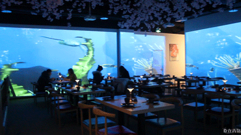 如此精致的餐廳是不是想拖家?guī)Э谝黄饋眢w驗?完全不用擔(dān)心坐不開哦,店里有單獨的包間,而且包間的墻壁和餐桌全是投影幕布,聚餐氛圍蹭蹭起~只要開始上菜,這里就會搖身一變,成為夢里看到的世界...