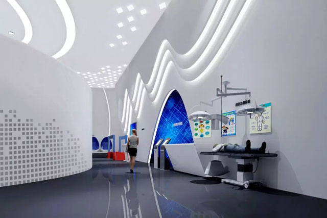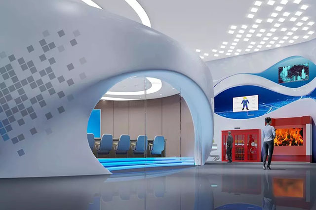 花生數(shù)字在該項(xiàng)目中,承擔(dān)場館設(shè)計(jì)、施工工作,以“眼睛-中心“”海浪-弧線”為設(shè)計(jì)靈感,以培訓(xùn)講堂為中心,分享展示及體驗(yàn)區(qū)域圍繞其周,在有限的空間內(nèi)容納勞保防護(hù)、消防安全、起重安全、電器安全、應(yīng)急急救、隱患排查、等安全主題,將功能性與藝術(shù)性完美結(jié)合,打造了一個(gè)充分融入智能科技的現(xiàn)代化場館。