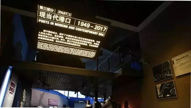 “中國港口從出現(xiàn)至今,歷經(jīng)幾千年的發(fā)展變遷,少有展覽能夠?qū)⑵錃v史大事一一梳理,此次升級后的港口歷史陳列特地在尾廳設(shè)置‘中國港口大事記’展項(xiàng),從遠(yuǎn)古時代先民立木成港到2017年寧波舟山港年貨物吞吐量全球首破十億噸,記錄中國港口發(fā)展史上的每一件大事,是對全展的回顧,也是對中國港口發(fā)展史的權(quán)威總結(jié)!敝袊劭诓┪镳^負(fù)責(zé)人告訴記者,此次內(nèi)容設(shè)計(jì)秉承整個陳列中“港城互動”的理念,以現(xiàn)當(dāng)代中國港口建設(shè)發(fā)展為主線,以關(guān)系港口建設(shè)發(fā)展的重大事件為重點(diǎn),再現(xiàn)中華民族建設(shè)海洋強(qiáng)國、港口強(qiáng)國的歷史進(jìn)程,突出港口在中國經(jīng)濟(jì)建設(shè)和現(xiàn)代社會發(fā)展中的重大作用。