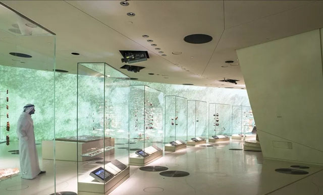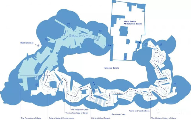 館內(nèi)包含11個(gè)陳列展館,帶領(lǐng)訪客穿越卡塔爾從數(shù)百萬(wàn)年前的一個(gè)半島