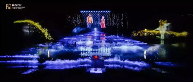 演出以水火元素作為演出視覺核心概念,通過皮影、晉祠等傳統(tǒng)晉文化元素和投影水幕等現(xiàn)在舞臺(tái)科技,形成弘大蓬勃的視聽效果,將晉陽古城的文化歷史精髓完美再現(xiàn),并展現(xiàn)出的昂揚(yáng)熱烈的晉人風(fēng)骨。