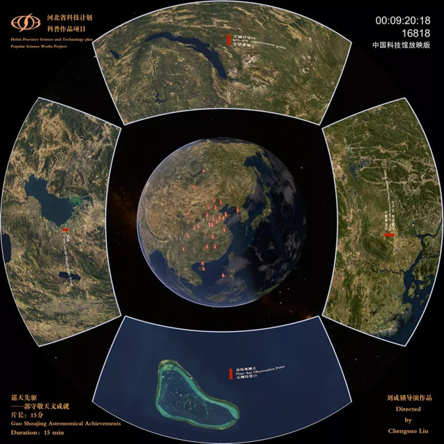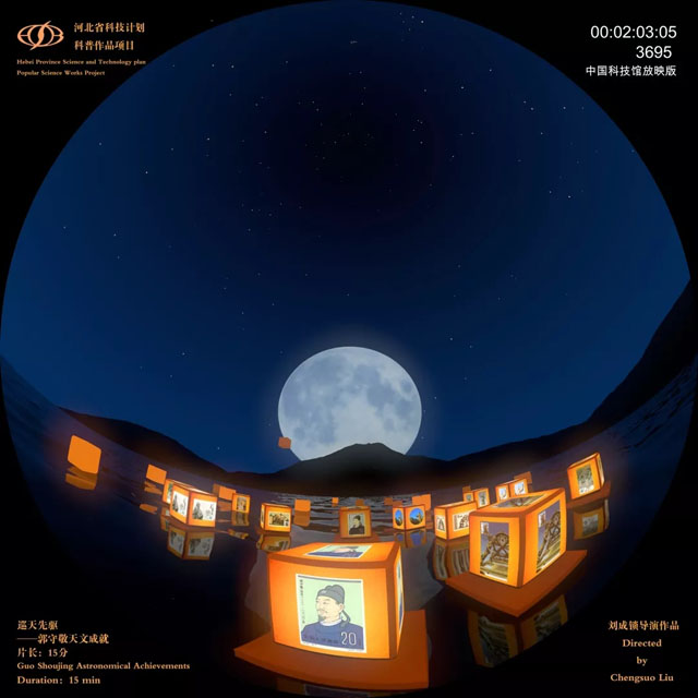 這部作品是河北師范大學(xué)美術(shù)與設(shè)計(jì)學(xué)院、物理科學(xué)與信息工程學(xué)院、校博物館科研團(tuán)隊(duì)聯(lián)合創(chuàng)作的原創(chuàng)作品,也是本次展映活動(dòng)中唯一一部由國(guó)內(nèi)高校科研團(tuán)隊(duì)創(chuàng)作的球幕電影作品,主要介紹了元代大科學(xué)家郭守敬傳奇的一生和他在科學(xué)事業(yè)上的探索與取得的成果。在創(chuàng)作過程中,國(guó)家天文臺(tái)中國(guó)虛擬天文臺(tái)團(tuán)隊(duì)、國(guó)家天文臺(tái)興隆觀測(cè)站、邢臺(tái)郭守敬紀(jì)念館、北京郭守敬紀(jì)念館等單位給予了大力支持。