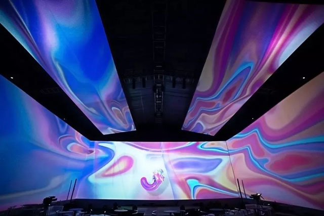 現(xiàn)場(chǎng)的另一個(gè)驚喜更是讓觀眾們驚叫鼓掌。內(nèi)場(chǎng)的6面投影巨幕營造全沉浸式體驗(yàn)。四周星幕閃耀,置身其中,仿佛穿越到另一個(gè)世界。