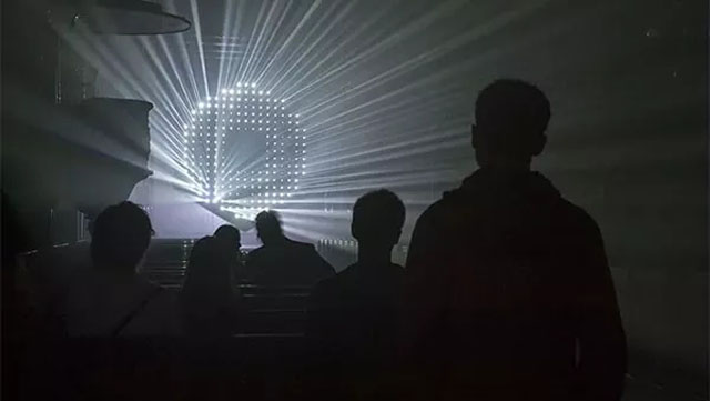 進入教堂的內(nèi)部,就穿越到了宇航員登月的瞬間。黑暗中有一個壓倒一切的光源,所有人的視線都被吸引過去,忍不住屏住呼吸,像是虛擬宇宙中的太陽,如此神圣!