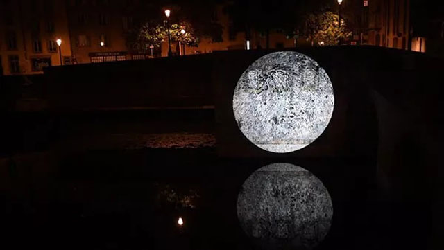 為紀念人類成功登月,一個叫“Mutation du visible”的清晰月球表面被投影到橋面下。