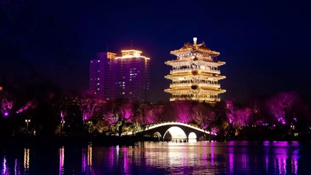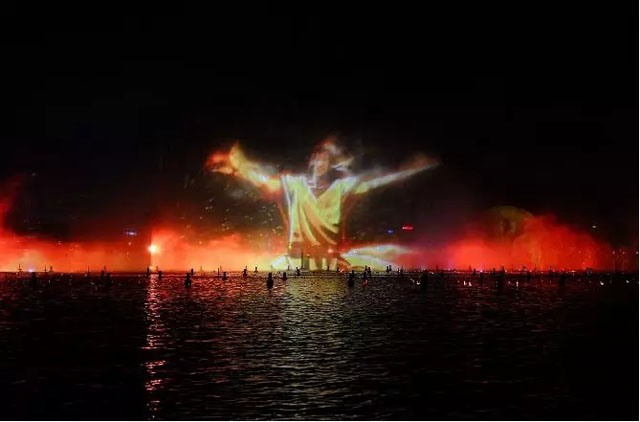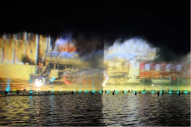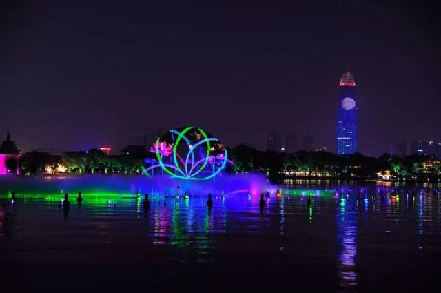 演出以大明湖為載體,用濟(jì)南故事展現(xiàn)人文畫卷,伴隨泉水涌動(dòng)和高達(dá)116.98米的擎天噴泉,湖面上光影變幻,講述濟(jì)南從歷史走向未來的動(dòng)人篇章。