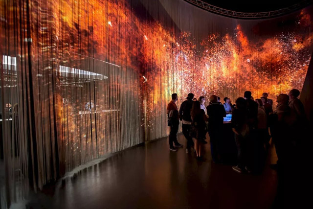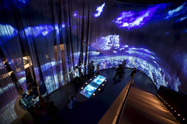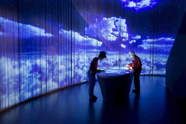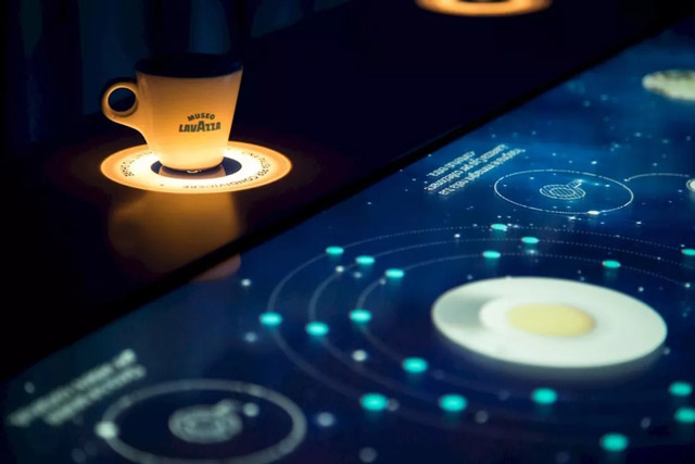 參觀博物館之初,每位游客都會收到一個裝有存儲介質(zhì)的濃縮咖啡杯。通過將杯子放置在交互式桌面上,可以控制沉浸式360°投影的順序。