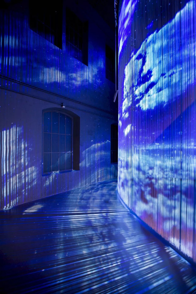 經(jīng)由博物館的線性樓梯浸入下來,游客通過觸摸或移動該簾幕,像燈光雕塑一樣,觸覺空間也會在視覺上影響相鄰的博物館區(qū)域,從而體驗到光影的流動與變幻。