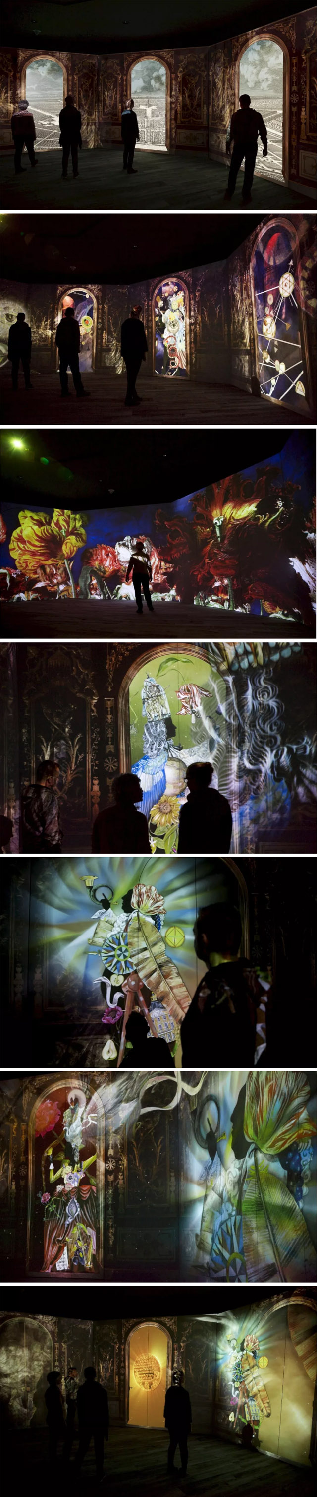 游客以“偷窺”的方式參與行動,通過拱形的窗戶看舊的掛毯將房間變成了神秘的森林,巴洛克式的花卉圖片形成了一片洶涌的超大郁金香花海。