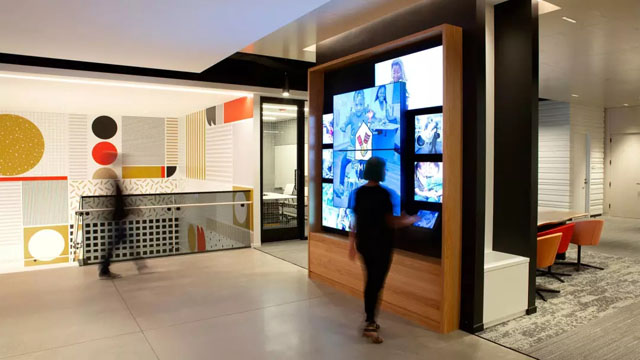 在漢堡大學(xué)互動(dòng)中心附近,有一百多個(gè)木框數(shù)字顯示屏的墻壁更新,以顯示當(dāng)前出席的每個(gè)大學(xué)生的照片,有趣的個(gè)人事實(shí)和畢業(yè)接管模式,以慶祝課程完成。在后臺(tái),這兩種體驗(yàn)都可以通過自定義內(nèi)容管理系統(tǒng)輕松更新。