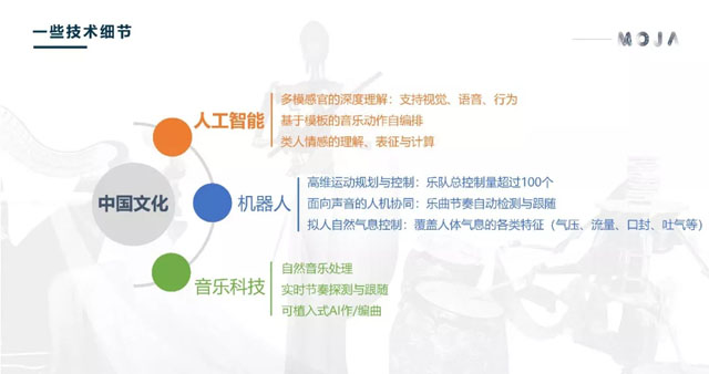 清華團(tuán)隊打造的全球首支中國風(fēng)機(jī)器人樂隊:墨甲,融合了:智能交互技術(shù)、雕塑藝術(shù)、音樂藝術(shù)以及中國傳統(tǒng)文化元素,從姿態(tài)優(yōu)雅的機(jī)器人形象到古色古香的舞臺設(shè)計,都蘊(yùn)含著豐富的中國風(fēng)元素。