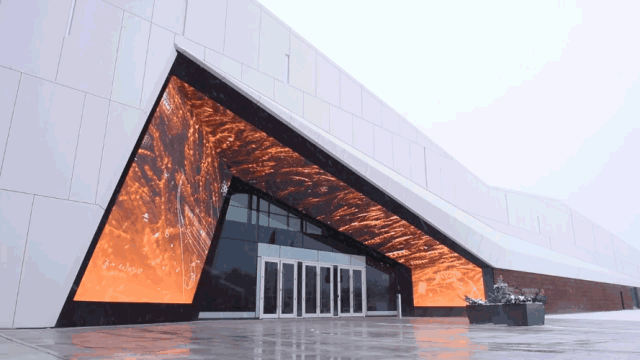 而正門四周鑲嵌的艾比森LED顯示屏也起到了畫龍點(diǎn)睛的作用,優(yōu)質(zhì)的顯示效果及前衛(wèi)造型設(shè)計讓加拿大科技博物館在外觀上更加充滿了現(xiàn)代化與科幻色彩。