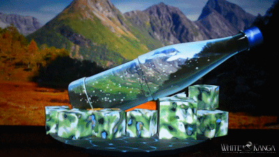 這是WHITE KANGA利用大型礦泉水模型做為幕布結(jié)合各種投影儀,為大家呈現(xiàn)的一場(chǎng)場(chǎng)平面與立面的同步投影秀。這瓶礦泉水不僅能將一幅幅美妙的大自然風(fēng)光裝進(jìn)瓶?jī)?nèi),營(yíng)造出自然純凈的氛圍,還能夠通過(guò)不同的光影設(shè)計(jì)表現(xiàn)出時(shí)尚的感覺(jué)。