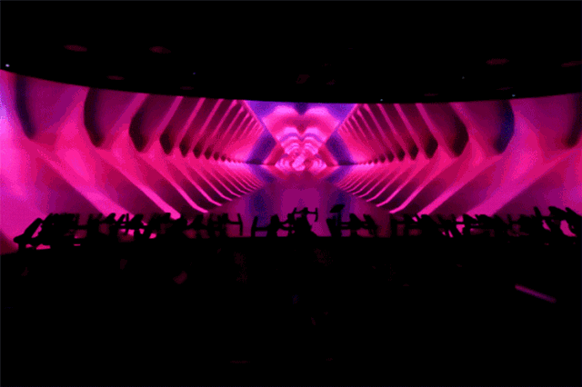 通過270度的巨幅投影屏幕,在強(qiáng)勁有力的動(dòng)感節(jié)奏的帶領(lǐng)下,如同有個(gè)真實(shí)的物體在那里!仿佛置身于時(shí)空變換中。