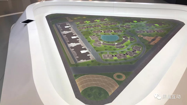 參觀者通過人臉識別系統(tǒng)便進(jìn)入了智慧社區(qū),首先看到的便是AR沙盤展示。參觀者可以通過AR眼鏡裝置觀看展示的小區(qū)三維動(dòng)畫模型內(nèi)容,詳細(xì)了解小區(qū)的整體環(huán)境、綠化情況、配套設(shè)施,對于樓盤有整體化的了解。