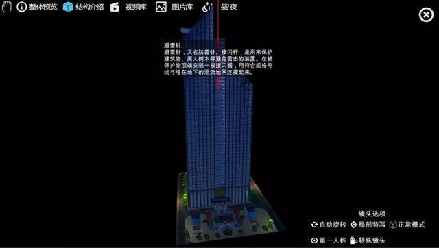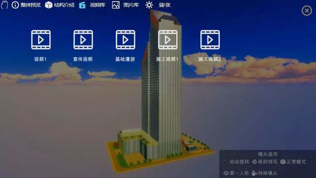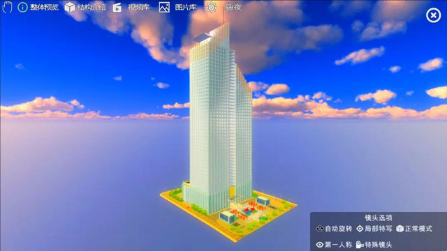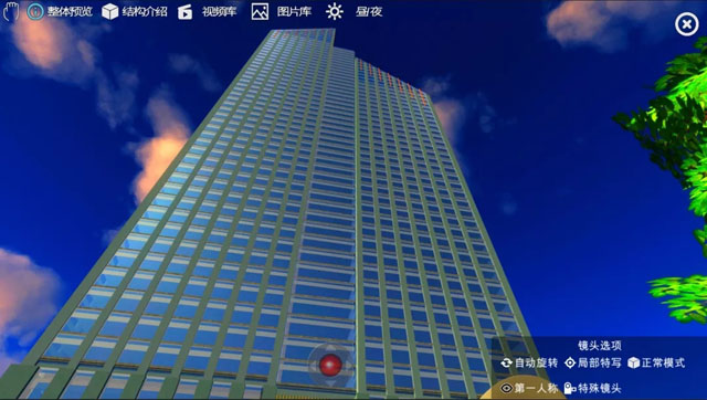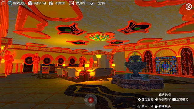 漫游模式——第一人稱的方式進行對場景漫游觀光,可任意進出建筑內(nèi)部
