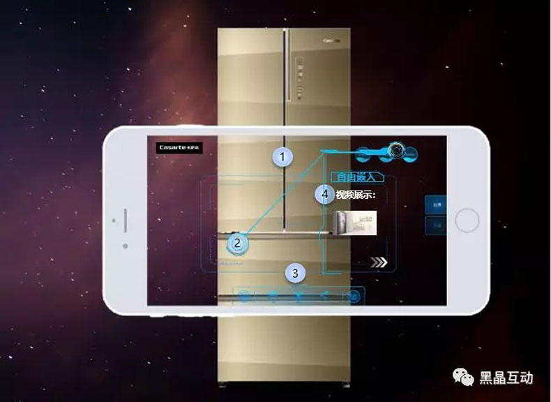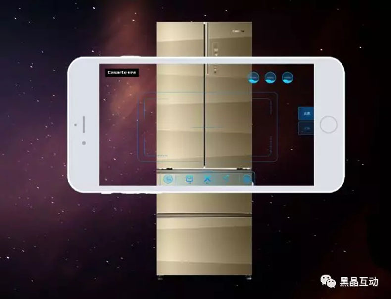 黑晶為海爾卡薩帝冰箱定制的《卡薩帝冰箱AR互動(dòng)體驗(yàn)方案》,通過利用AR技術(shù)將卡薩帝冰箱的多種產(chǎn)品功能與核心技術(shù)精彩演繹,以具象化、科技化方式來展現(xiàn)產(chǎn)品優(yōu)勢(shì),讓AR技術(shù)帶動(dòng)產(chǎn)品營銷。