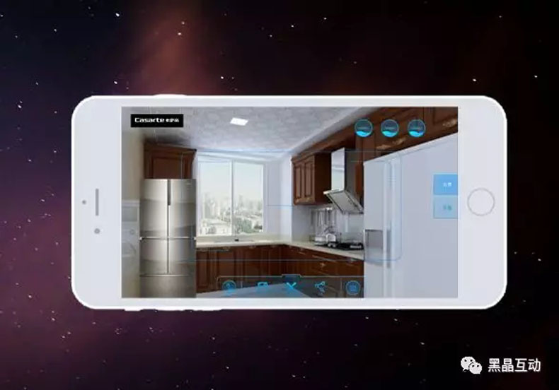 針對(duì)于卡薩帝冰箱產(chǎn)品功能多樣、技術(shù)復(fù)雜的情況,黑晶為其研發(fā)了一款 AR APP,內(nèi)涵虛實(shí)結(jié)合、離線體驗(yàn)、場(chǎng)景體驗(yàn)三種功能,以三個(gè)不同維度來展現(xiàn)產(chǎn)品功能與技術(shù)。