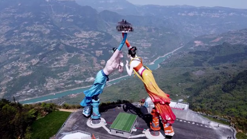 其造型靈感來自于武隆民間傳說——白馬王子敖嘲風(fēng)與茶仙女的愛情故事為原型。極具震撼的造型外,還具有令人驚嘆的科技含量,游客可通過機(jī)械臂上升52米,站在千米高空的玻璃平臺(tái)上,通過機(jī)械臂的旋轉(zhuǎn),體驗(yàn)飛翔在白馬山上的感受,一覽白馬山美景。