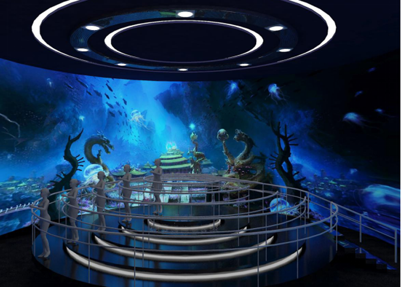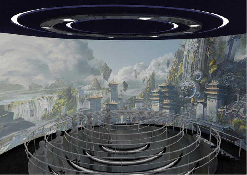 360度動(dòng)感環(huán)幕立體影院項(xiàng)目占地約800平方米,采用獨(dú)創(chuàng)的360°動(dòng)感弧幕劇場(chǎng)形,游客站立在動(dòng)感平臺(tái)之上,佩戴3D眼鏡,手扶護(hù)欄可360°觀賞宏大的影片畫面。