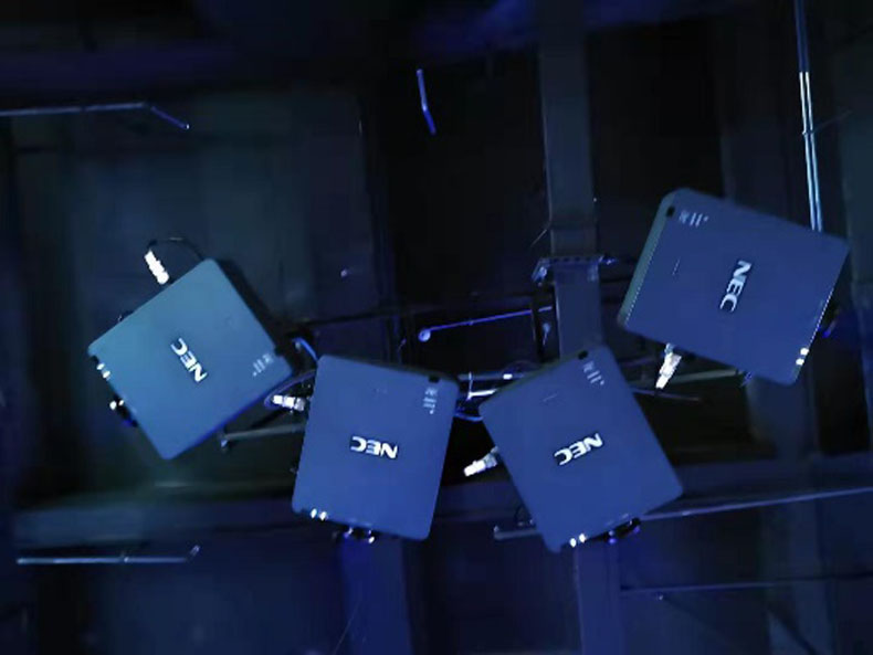 遁入極具吸引眼球的神秘量子世界,使用15臺NEC PA803UL+(8000流明、WUXGA分辨率)液晶激光投影機,以CAVE投影方式打造的沉浸式立體空間,織就起一張縱橫寰宇的天地網。不同于單臺投影畫面,大規(guī)模融合畫面若存在色差、亮度不一致的問題,將很明顯一眼就被看出來。NEC投影機發(fā)揮自身亮度和色彩高度統(tǒng)一的優(yōu)勢,保證了四個投影面的亮度和色彩均勻一致。而PA803UL+ 內置的邊緣融合功能進一步將融合帶進行完美融合,讓整體畫面沒有任何割裂感。