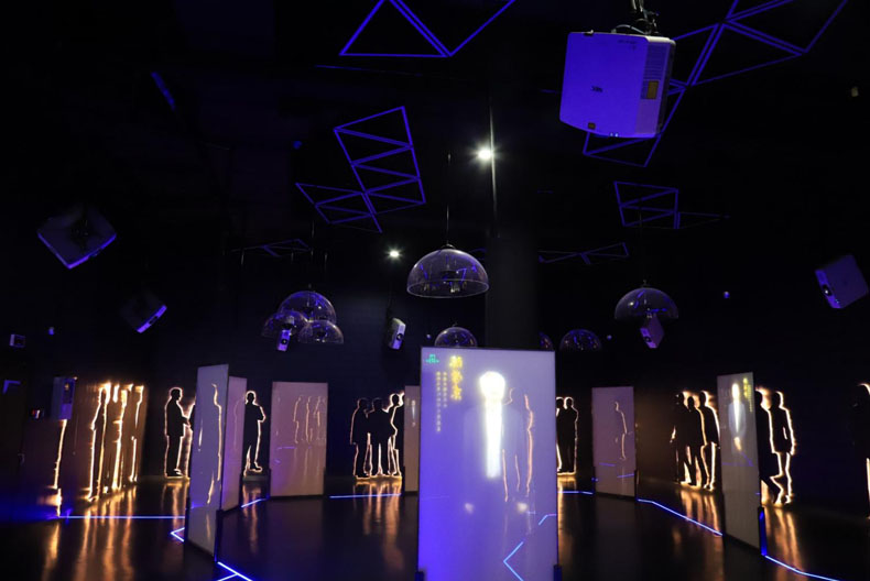 來到創(chuàng)未來主題展區(qū),放眼望去炫酷燈影勾勒的夢幻場景創(chuàng)意獨特。該展項由8臺PA803UL+ 液晶激光投影機分別以背投的方式將虛擬人像投射于霧化玻璃幕之上,當你走近玻璃幕,一位位科學大咖的虛擬影像也逐漸清晰可見,邀你來一場與未來技術的靈魂對話。