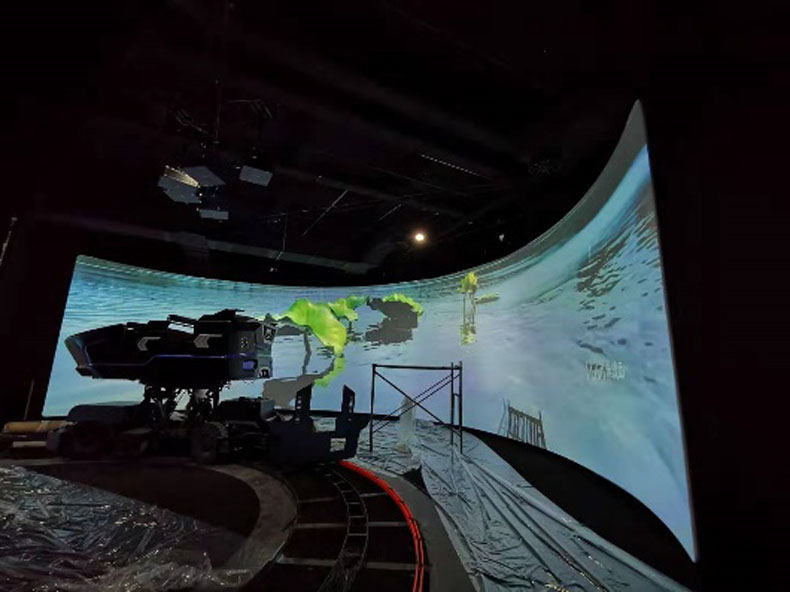 在“黑暗騎乘”體驗展項中,采用11臺NEC PX803UL-BK+(8000流明、WUXGA分辨率)DLP激光投影機融合呈現出極具整體感的超大弧幕影像畫面,隨動感座椅的上升搖擺,俯瞰大自然瑰麗美景。如此大規(guī);∧煌队叭诤蠎铆h(huán)境下,單有垂直和水平校正功能是不夠的,NEC PX803UL-BK+ 所擁有的幾何校正軟件還增加了弧形校正、墻角校正、八點校正等功能,為調整不同方向投射的影像提供了更加靈活、便捷的解決方案。