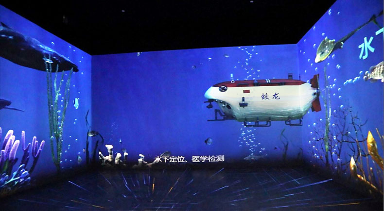 為了營造CAVE洞穴沉浸式的視覺沖擊享受,15臺投影機均安裝于天花板之上,激光投影機可實現720°全方位自由安裝,保證了地面投影畫面的視覺呈現,得以讓觀眾全面了解安徽在量子領域的尖端成果。配合電動鏡頭位移、變焦、聚焦及鏡頭記憶功能,為安裝調試帶來靈活性、便捷性。